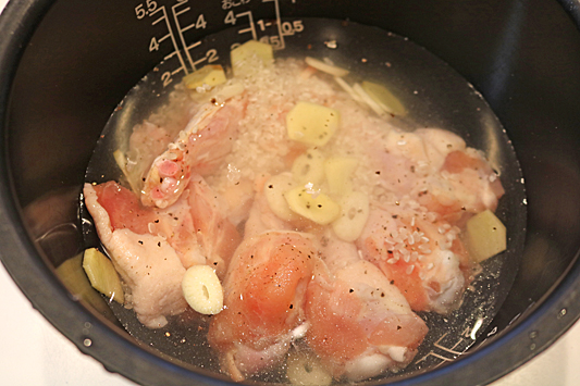 3.加入大米和*中的所有材料,启动普通煮饭模式。