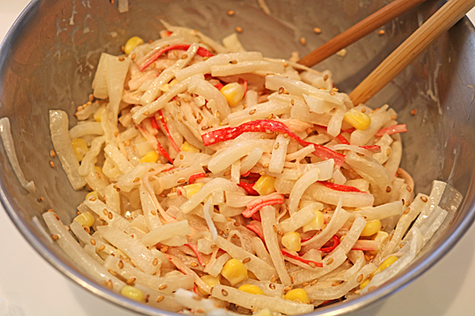 爽脆口感让人上瘾♪ 白萝卜蟹棒玉米芝麻蛋黄酱沙拉