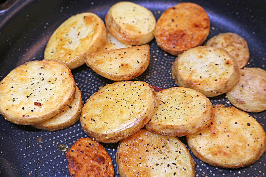 這道料理是將馬鈴薯裹上太白粉後,用平底鍋煎製而成,