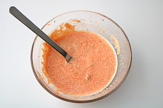 3.Flake the mentaiko and mix with mayonnaise and shiro-dashi.